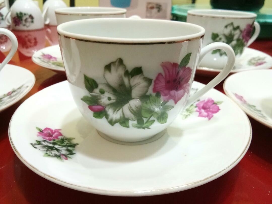 Teko Dan Cawan Kopi Set Bunga Kangkung Chinese Decor Vintage Bowls Tea Pots